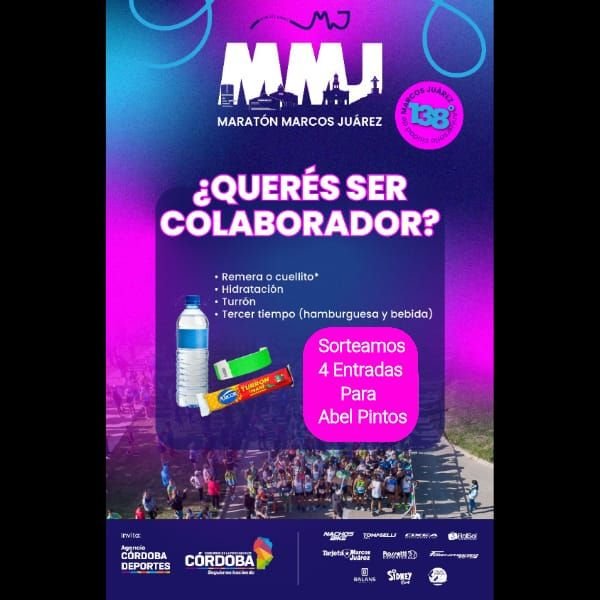 La Municipalidad de Marcos Juárez, junto a la Comisión de Deporte, buscan colaboradores para la Maratón 2025. El evento se realizará el próximo domingo 19 de octubre a las 8.30 h.