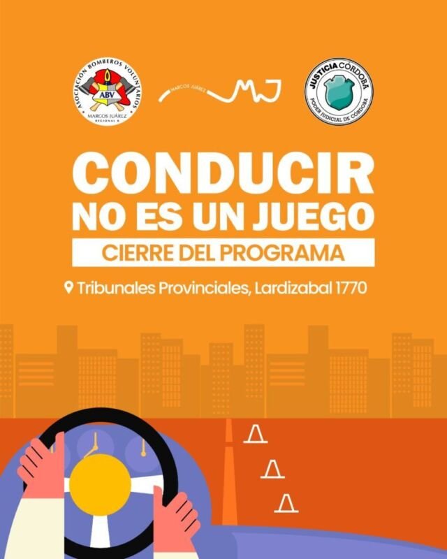 El próximo miércoles y jueves 6 de noviembre en los Tribunales Provinciales, Lardizábal 1770, de Marcos Juárez se realizará el cierre del programa «Conducir no es Juego».