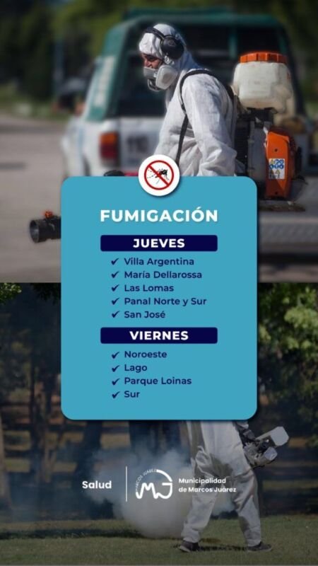 La Secretaría de Salud de la Municipalidad de Marcos Juárez informa que habrá dos jornadas de fumigaciones en la ciudad.