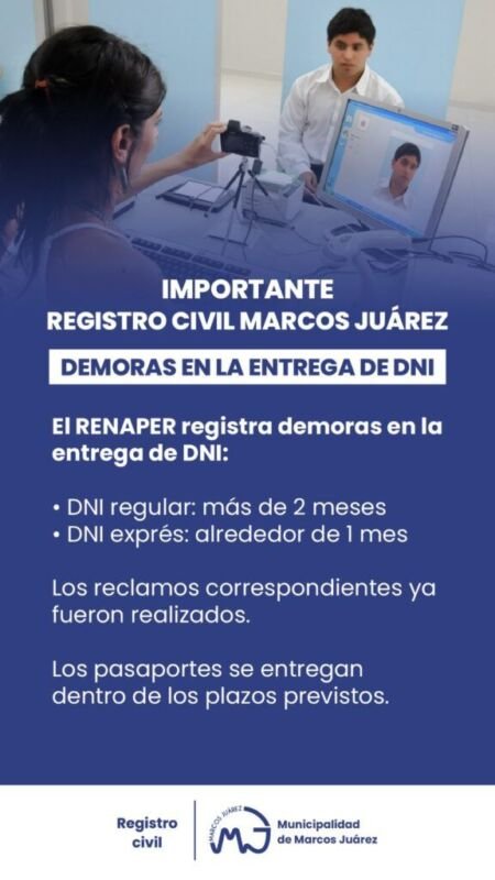 Desde la oficina local del Registro Civil se indicó que los reclamos correspondientes ya fueron realizados ante el organismo nacional con el objetivo de normalizar los plazos de entrega.