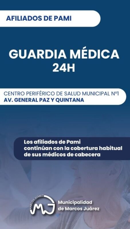 Desde las 00 hs del 1 de Abril quedó habilitada la guardia médica las 24 horas de PAMI en el Centro Periférico de Salud Municipal N°1, ubicado en la intersección de calles Gral. Paz y Quintana.