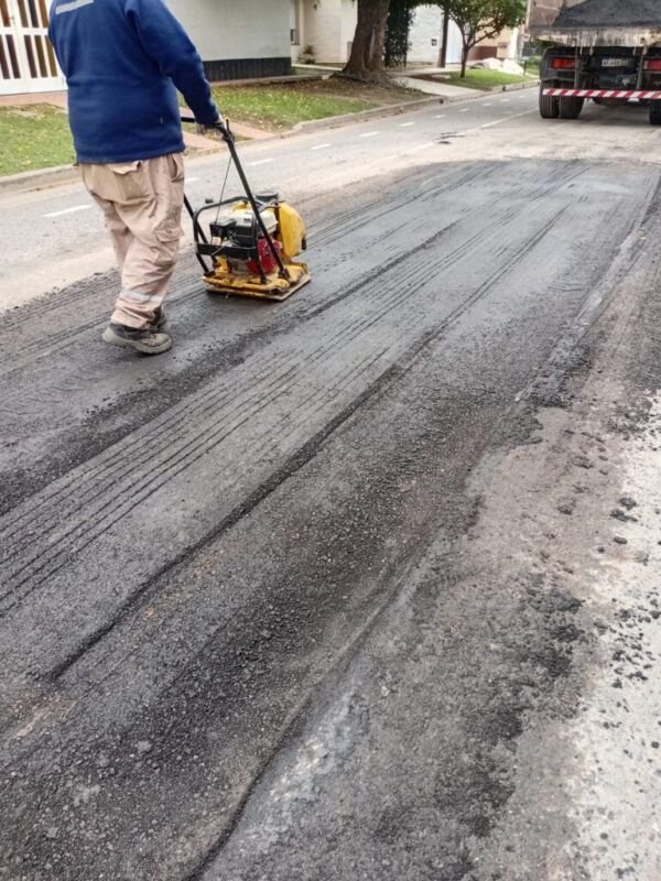 Los equipos trabajan en un bache de Azcuénaga al 400. Además, durante la mañana trabajaron con maquinaria en el barrio Sur y calle 25 de Diciembre y el equipo de alumbrado colocó artefactos e hizo conexiones sobre Paula Albarracín, entre Antártida y Buenos Aires.